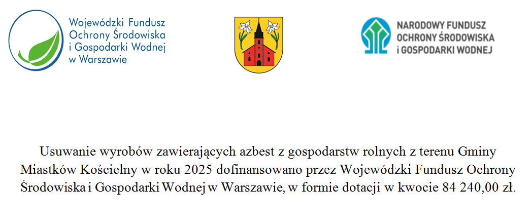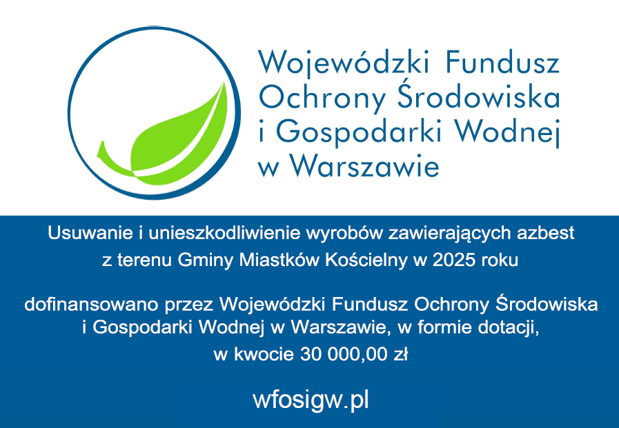 Usuwaniu wyrobów zawierających azbest z gospodarstw rolnych z terenu Gminy Miastków Kościelny w roku 2025 Czytaj więcej...